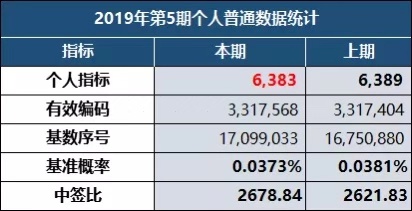 本期个人普通小客车指标有效申请编码总数3317404个,普通小客车指标申请个人共有3317404个有效编码,因此本期将配置个人普通小客车指标6389个。