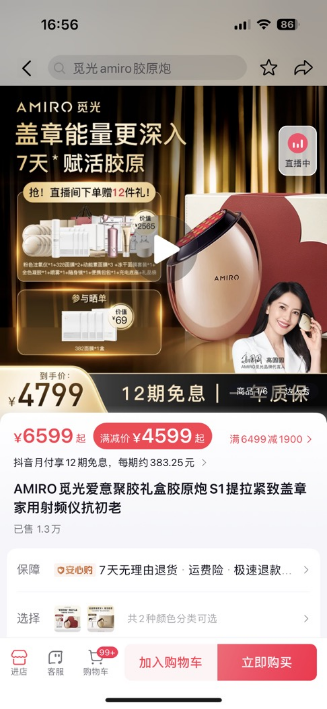 并且,除了AMIRO觅光官方旗舰店,根据近期中国网报道,AMIRO觅光胶原炮第一代产品在京东、天猫、抖音等不同平台的官方店铺,以及官方直播间、贾乃亮、向太、琦儿等达人抖音直播间,预估到手价均为4599。