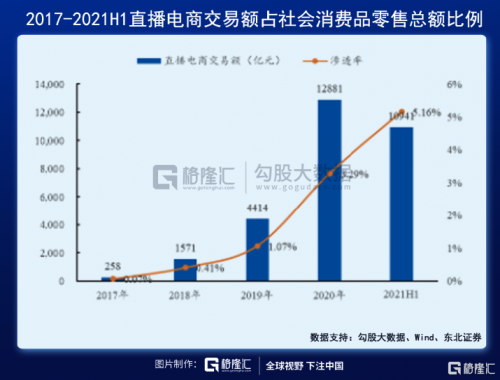 最明显的就是电商对消费的贡献。据东北证券,截至2021年上半年,直播电商交易额已经突破1.09万亿,全年突破2万亿确定性较强;直播电商额占网上商品和服务零售额比例已经达到17.9%,相较于2020年底的10.95%显著提升近7%。同样地,直播电商对于社会消费品零售总额的贡献度也从2020年底的3.29%提升至2021年中的5.16%。