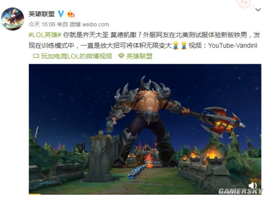 有趣的是,这位玩家的发现还引起了@英雄联盟官微的关注,并转发了他的演示,将其戏说为“齐天大圣 莫德凯撒”。