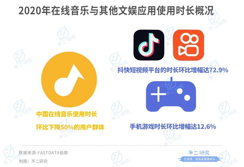 在「不二研究」看来,在互联网流量进入存量市场的当下,腾讯音乐被短视频稀释了用户时间,在线音乐不易,但腾讯音乐杀入社交娱乐也更难。