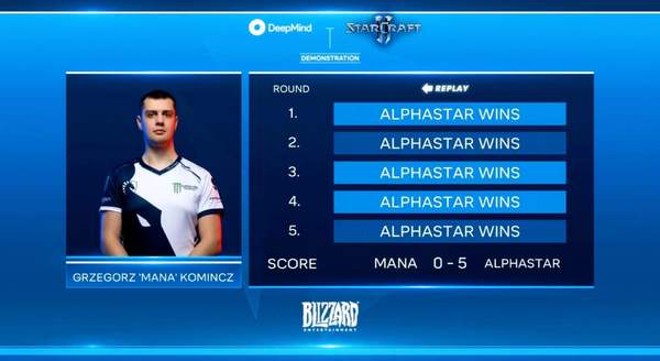 此次演示在YouTube的“DeepMind”频道以及Twitch上进行了直播,前后时长超过两小时。AlphaStar对上了两位人类选手,在共计10轮比赛中均以5比0击败人类对手TLO、MANA,最后仅让MANA在现场环节赢下1场。