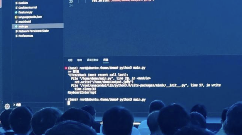 网传图片显示,华为在 5 月 10 日举行一场发布会上展示大模型文生图能力时,演示过程中因为运行时按下 Ctrl-C 中断,显示出了一段“time.sleep (6)”代码。