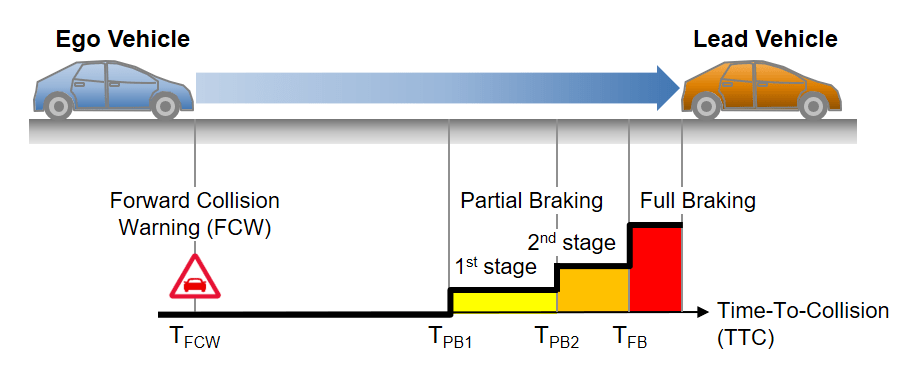 计算过相对速度和刹车距离以后,如果系统算出来的结果是会撞上,制动系统就会刹车。