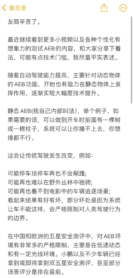 很有意思的是,抛开这次争论,小鹏和问界在怎么提高 AEB 能力这件事情上,想法是非常一致的。