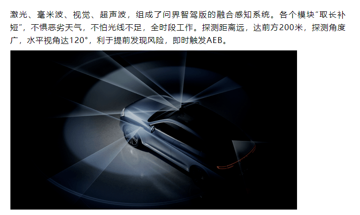 比如华为就在官方宣传里说,他们直接把自动驾驶的能力下放给 AEB 。传感器又多,算法又强,他们喊的 AEB 能力远超过去,还真挺有可能。