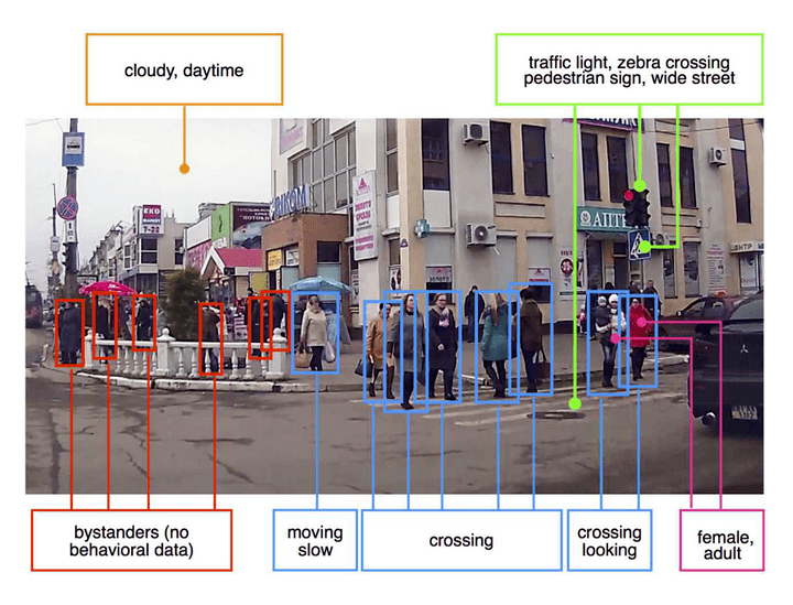 比如系统识别到了前面路边有一个人,系统就会想他是搁那干着还是会过马路?他一直看着车子的方向,会不会突然走过来?