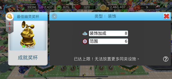 而在常规的经营成就之外,游戏中还有非常有趣的彩蛋成就。譬如,我们在游戏中点击天上飞翔的鸟或者飞机时就能够激活一个惊弓之鸟成就,可获得异形鸟奖杯。还有我们可以不停地点击游乐园门口的停车场,也可以触发一个彩蛋成就,可获得50点券和最佳幽灵奖奖杯。游戏中的这些成就彩蛋都设计的颇为巧妙,并且能时不时为玩家带去小惊喜,让游乐园的自由经营变得更加轻松有趣。