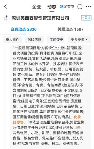 喜茶经营范围新增化妆品零售快讯