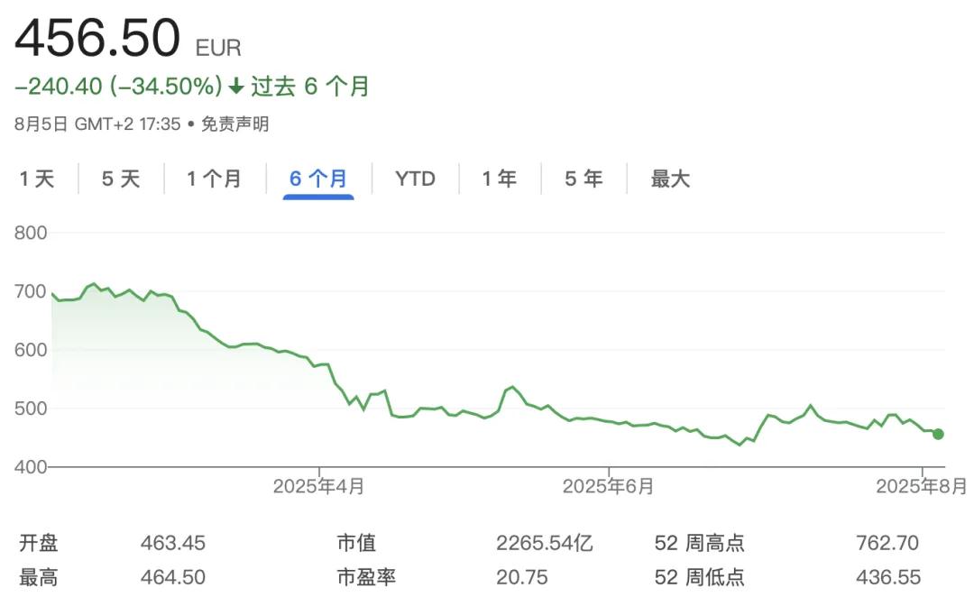 LVMH集团股价走势