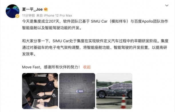 百度造车207天 夏一平:集度已开展模拟样车智能驾驶开发快报