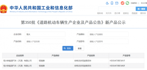 根据工信部第 350 批《道路机动车辆生产企业及产品公告》新产品公示,恒大汽车终于申报了首款车型 —— 恒驰 5 LX,产品型号为 HDE6470BEVA1F 和 HDE6470BEVA0F。