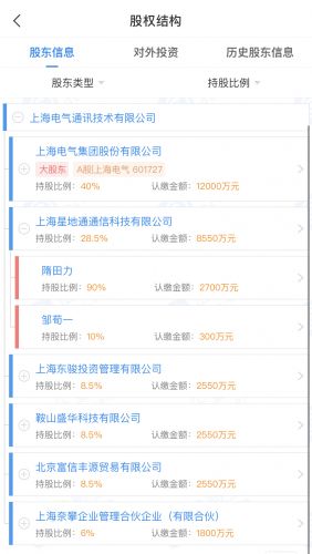 企查查APP显示,上海电气通讯主要生产、销售专网通信产品,上海电气持有其40%的股份。值得一提的是,“专网通信业务”骗局的关键人物隋田力,其控股的上海星地通通信科技有限公司为上海电气通讯第二大股东,持股28.5%。