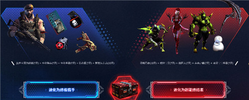 成为终极猎手可以领取领猎手专属进化奖励:救世主双功能版(7天) + 生化弹夹(7天) + 生化手雷(7天) + 防化服(7天) + 斯泰尔赤龙(30天)