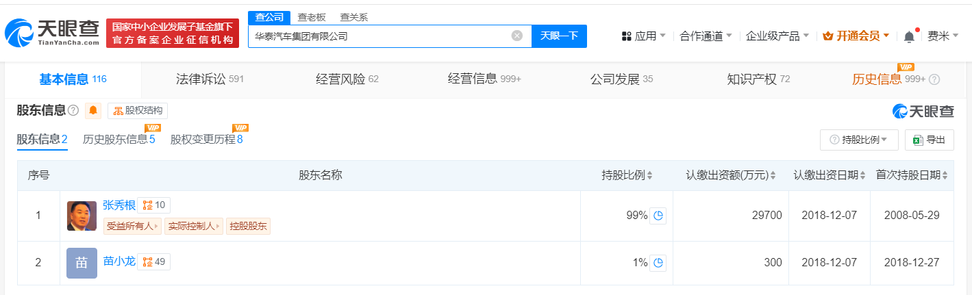 华泰汽车集团有限公司成立于2008年5月,法定代表人为苗小龙,注册资本3亿人民币,由张秀根和苗小龙分别持股99%、1%。天眼风险信息显示,该公司现存12条被执行人信息,被执行总金额超55亿元,此外还存在多条股权冻结、限制消费令和失信被执行人(老赖)信息。
