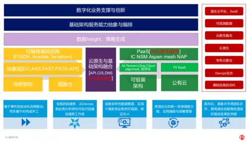 林静总结认为,面向企业云原生的建设中, F5提供“转型、构建、融合”三个方面的支持: