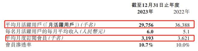 据keep发布的业绩公告,2023年的平均月活跃用户数和平均月度订阅会员数分别为2975.6万和391.3万,而2022年同期这两个数字分别为3638.8万和362.1万。这表明,与2022年相比,2023年的平均月活跃用户数同比下降18%,平均月度订阅会员数同比下降近12%。