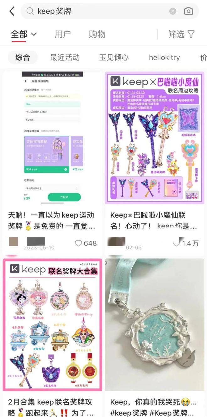 抖音、小红书等线上社媒平台关于keep奖牌的讨论也屡见不鲜,不少用户会在社媒上晒出男朋友/闺蜜帮跑的奖牌,讨论用小电驴是否也可以刷公里跑成功换取奖牌。虽然奖牌好看且无用,但是它好看呀!但是这是联名款啊!跑完步得到奖牌,内心的成就感油然而生,用大厂黑化来说,这就是用户粘性的来源。