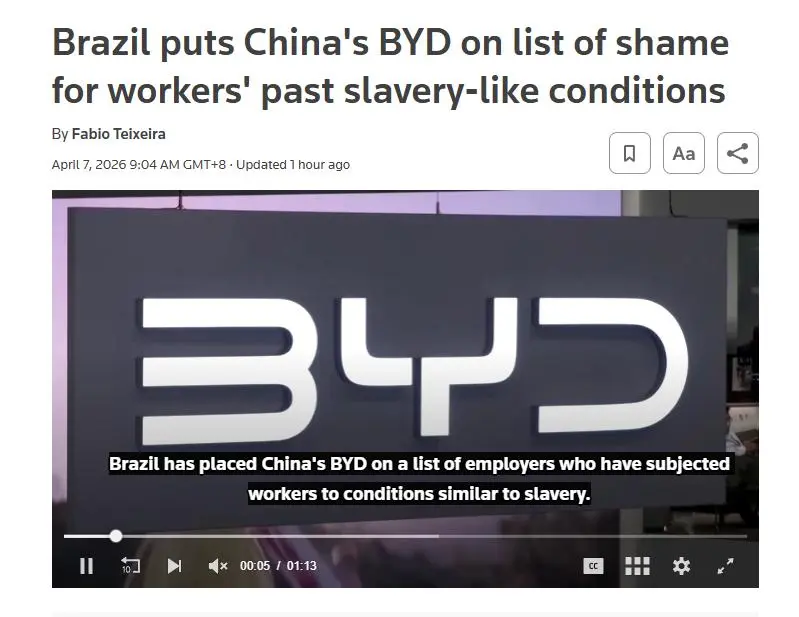 原来就在此前一天,外媒报道称,巴西相关政府部门因“奴役劳动”相关指控,已正式将中国新能源龙头车企代表——BYD,列入到了失信雇主名单,也就是“耻辱名单”。