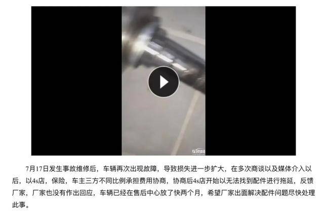 在车质网投诉平台上,一位启辰大V DD-i的车主投诉称,自己的车在7月17日发生事故进行维修后,车辆再次出现故障,4S店还用无法找到配件为理由拖延服务。