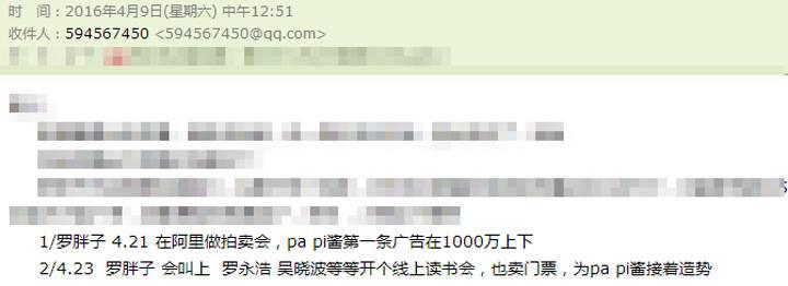 那段时间,我还挺忧伤的,当然,也有一个后台线人告诉我,我已进入罗胖PR团队的重点防范对象,哎,我必须感谢后台姑娘(罗胖,你团队有内奸哦),下面就是我那封邮件的截图,请留意日期4月9日: