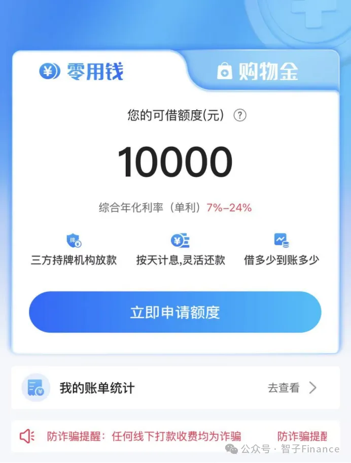 需要注意的是,浩瀚汇通自从步步高集团淡出后,开始作为助贷平台的资方,通过与各类消费金融APP,如分期乐,批量提供信贷资金。