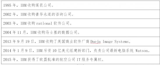 反观同样热衷于收购的IBM收购史,则是一次次小而精确的局部战争,瞄准在行业中与自身战略方向重合的公司进行收购。