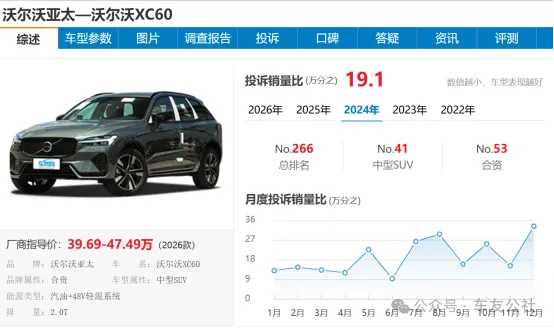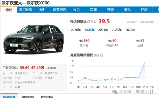 闹心不断,销量同比下跌 66%,沃尔沃主力车型 XC60 屡遭投诉汽车