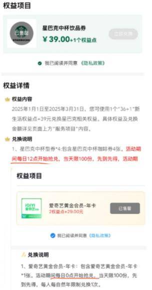 不仅高端权益缩水,“常规”经常用的权益也要靠抢。其中,咖啡券中午12点抢,视频会员零点抢。有用户吐槽,“咖啡从来没抢到过,因为点进去就卡,再刷新就没了”。还有人为了抢权益,定了半夜12点的闹钟,结果还没抢到。这种权益靠抢的机制让多位用户破防,直呼“被劝退”、“考虑退卡了”。