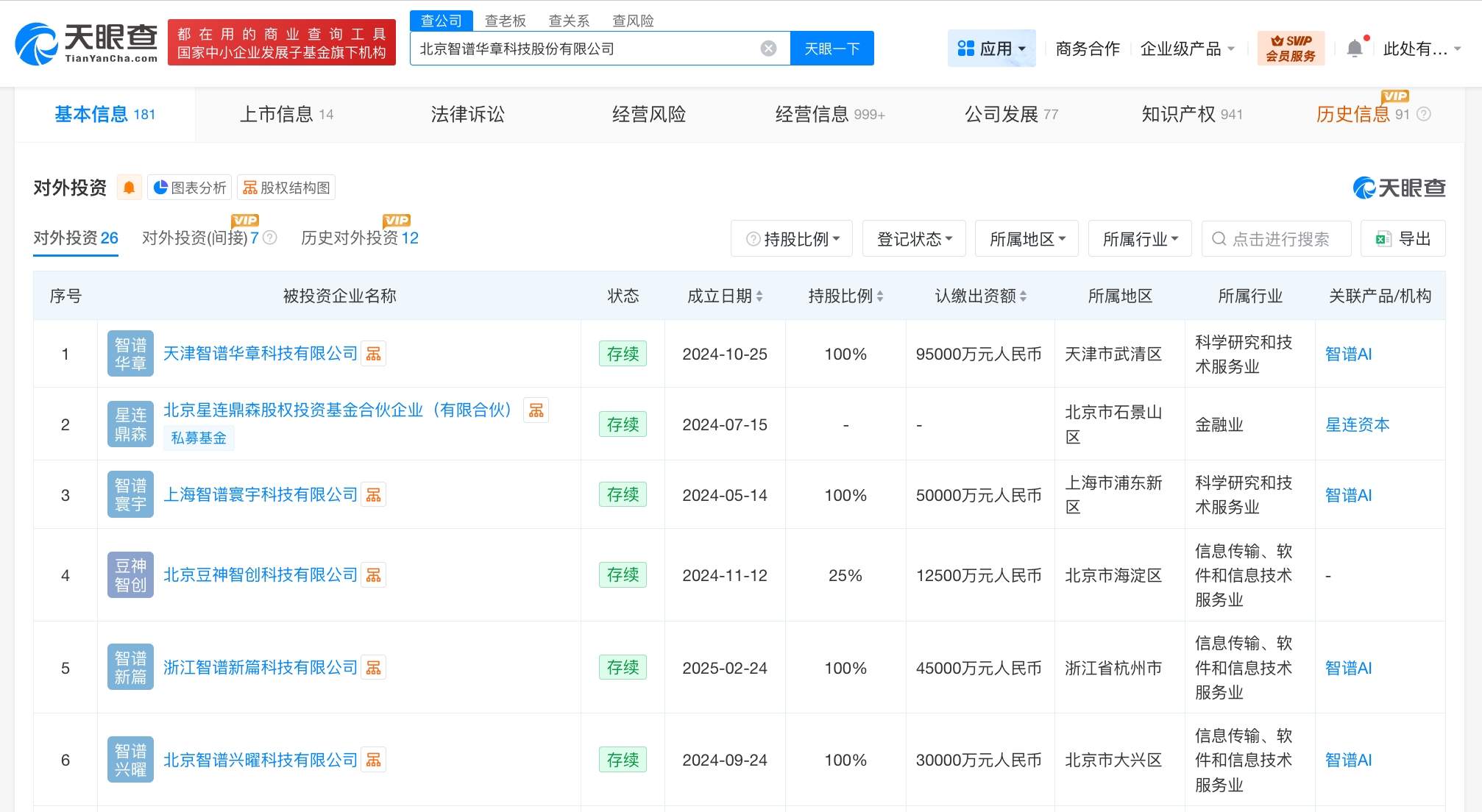 盘点智谱AI商业版图 智谱AI直接持股20余家企业观点