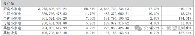 分品类来看:占比近七成的厨房小家电收入32.76亿元,同比下降10.1%;其他小家电收入2.04亿元,同比下滑8.85%;尽管个护小家电收入同比大涨174.31%至3.62亿元,母婴小家电同比增长31.83%至2.5亿元,但合计占比不足13%,难以对冲厨房品类缺口。
