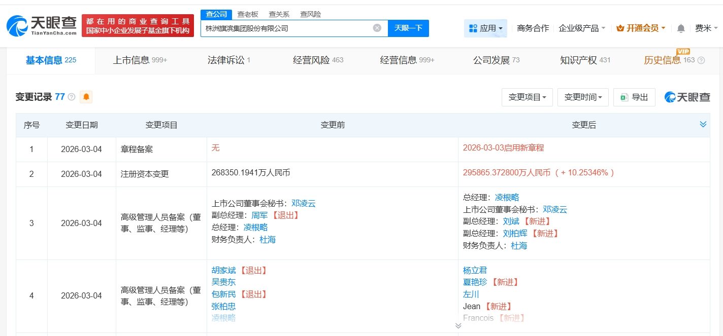 天眼查App显示,近日,旗滨集团(601636)发生工商变更,注册资本由约26.8亿人民币增至约29.6亿人民币,增幅约10%。