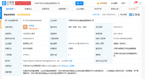 原天津字节跳动股权投资管理有限公司发生工商变更,天津字节跳动私募基金管理有限公司成立于2018年3月,正式更名为天津字节跳动私募基金管理有限公司。