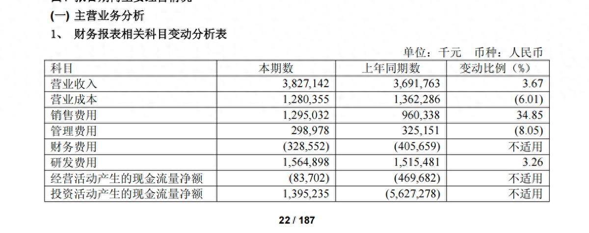 一个方面,上半年营业成本下降6.01%,另一个就是管理费用下降了8.05%。此外,数据显示,因加大AI产品推广半年报销售费用同比大增34.85%,且同期研发费用15.65亿元,占比营收40.89%。
