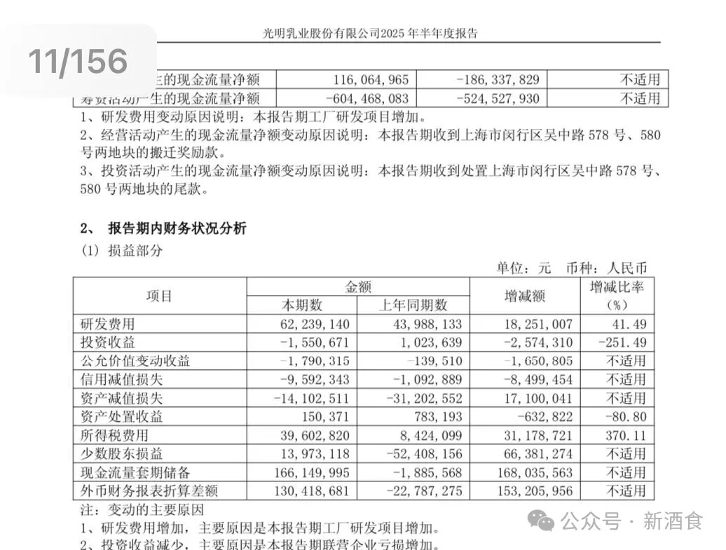 当然,在产品创新上,光明乳业内部其实还是重视的,这一点从2025年半年报告研发费用同比增长41.49%至0.62亿元,也能看出。只是近年来,光明乳业虽然每年推出数款新品,跨界联名也层出不穷,但始终没有打造出一款爆品,让人倍感遗憾。