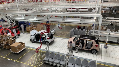 产线上的T03 我们也是通过更多的资质、更多的技术创新来降低产品的车本,我们A00级产品的T03现在在同行业产品里是卖得对贵的,零跑技术战略的第三方面是我们需要去设计可进化的智能座舱。