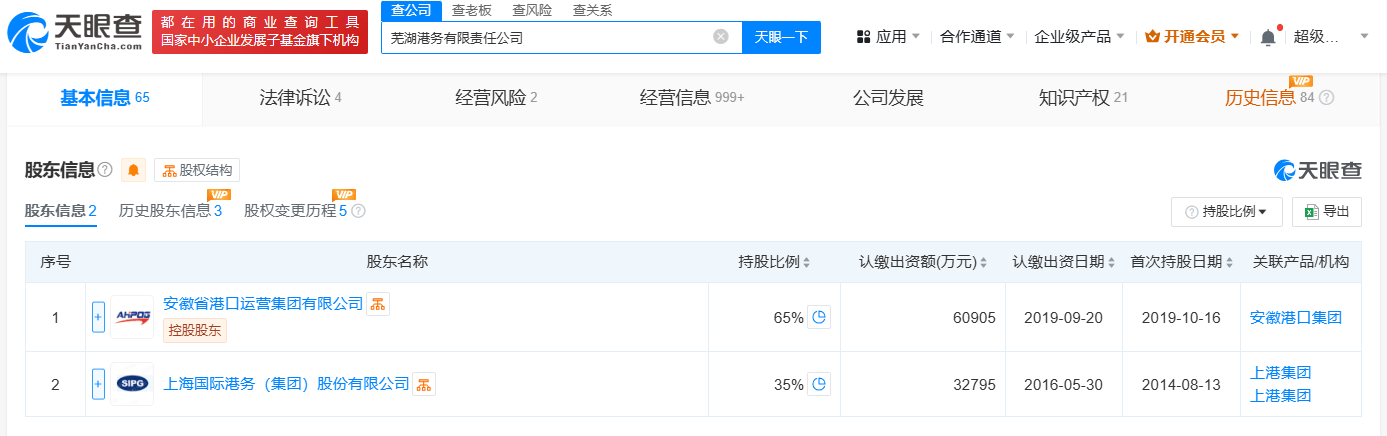 该公司成立于2014年4月,法定代表人为程峥,经营范围包括为船舶提供码头、过驳锚地设施,在港区内提供货物装卸、仓储服务等,由安徽省港口运营集团有限公司、上海国际港务(集团)股份有限公司共同持股。