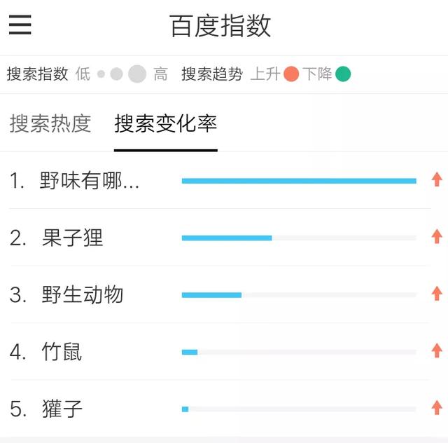 此外,“野味有哪些”热度最高,这也说明很多人可能都不知道什么是野味。因此,我们可以认为这是人们为了避免自己不小心吃了野味,因而选择主动搜索并学习。