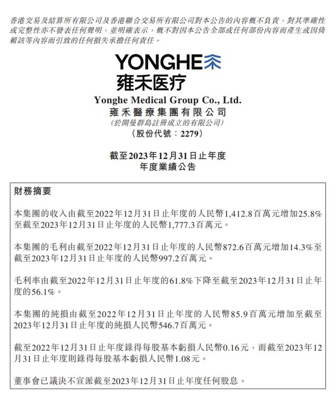 雍禾植发于今年3月28日发布了其2023年度业绩报告,虽然不至于惨淡的地步,但确实有些令人失望。