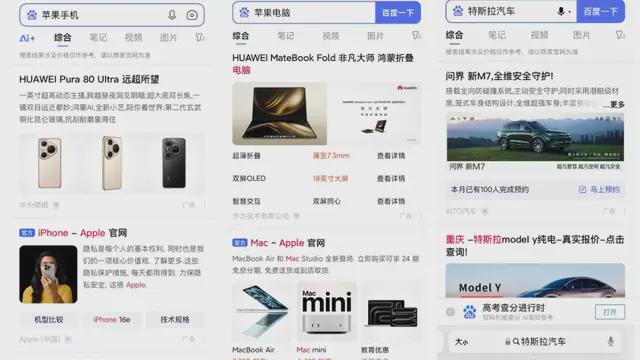 在百度搜索“苹果手机”,首页第一条是华为;搜索“拼多多”,结果却是京东;搜索“特斯拉汽车”,显示的是问界汽车。7月2日,百度刚宣布搜索引擎十年来最大改版,AI助手、多模态搜索、智能长文本输入一应俱全。然而,这场技术“自我革命”的背后,是广告生态的失序、代理商的退场,以及即将生效的新《反不正当竞争法》——百度搜索正在重新定义自己,也在被“魏则西旧痛”拖住脚步。