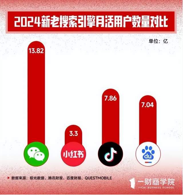 百度的危机除了广告主的态度转变外,另一方面也是因为AI正在为搜索注入新的想象力。为了抢占下一个时代的流量入口,新老搜索引擎正竞相“上车”。2024年初,各大平台还在探索大模型的应用场景;到了今年,搜索与AI的融合已经成为行业的标配:微信在2024年中为搜索加入AI问答功能;同年12月,抖音开始内测“AI搜”;小红书则分别在去年4月和8月推出了搜索智能助手“搜搜薯”与AI搜索产品“点点”。