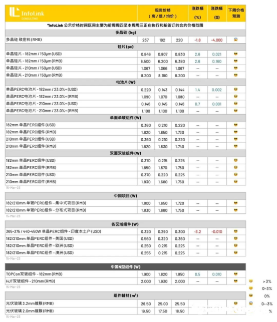 西南证券指出,上周硅料价格小幅下跌,硅片环节由于石英坩埚供给和品质分化,龙头企业石英砂供给保障优势突出,硅片品质与非硅成本的α属性凸显,因此部分硅片企业涨幅跑赢行业。进入3月中旬,市场博弈或将更多聚焦于一季报预期。短期来看,23Q1上游硅料、硅片,以及下游组件环节盈利整体良好。当前时点,板块估值处于历史低位区间,因此在2023全年装机增速仍较为确定的情况下,对于光伏行业无需悲观。二季度起新疆新特、永祥乐山12万吨、东立4.8万吨扩产、弘元5万吨等硅料项目有望投产,三季度将逐步贡献产出,硅料价格下行大势不改。目前重点推荐盈利突出的硅片环节、大尺寸电池结构性紧缺的电池环节、受益于新型电池技术扩产的电池设备环节,以及盈利整体改善的组件环节。宏观及长期角度看,各国新能源替代化石能源需求增大是大趋势。海外政策方面利好不断。持续底部推荐,细分板块顺序电池>硅片>组件>胶膜>硅料,建议积极布局拥有alpha的公司。