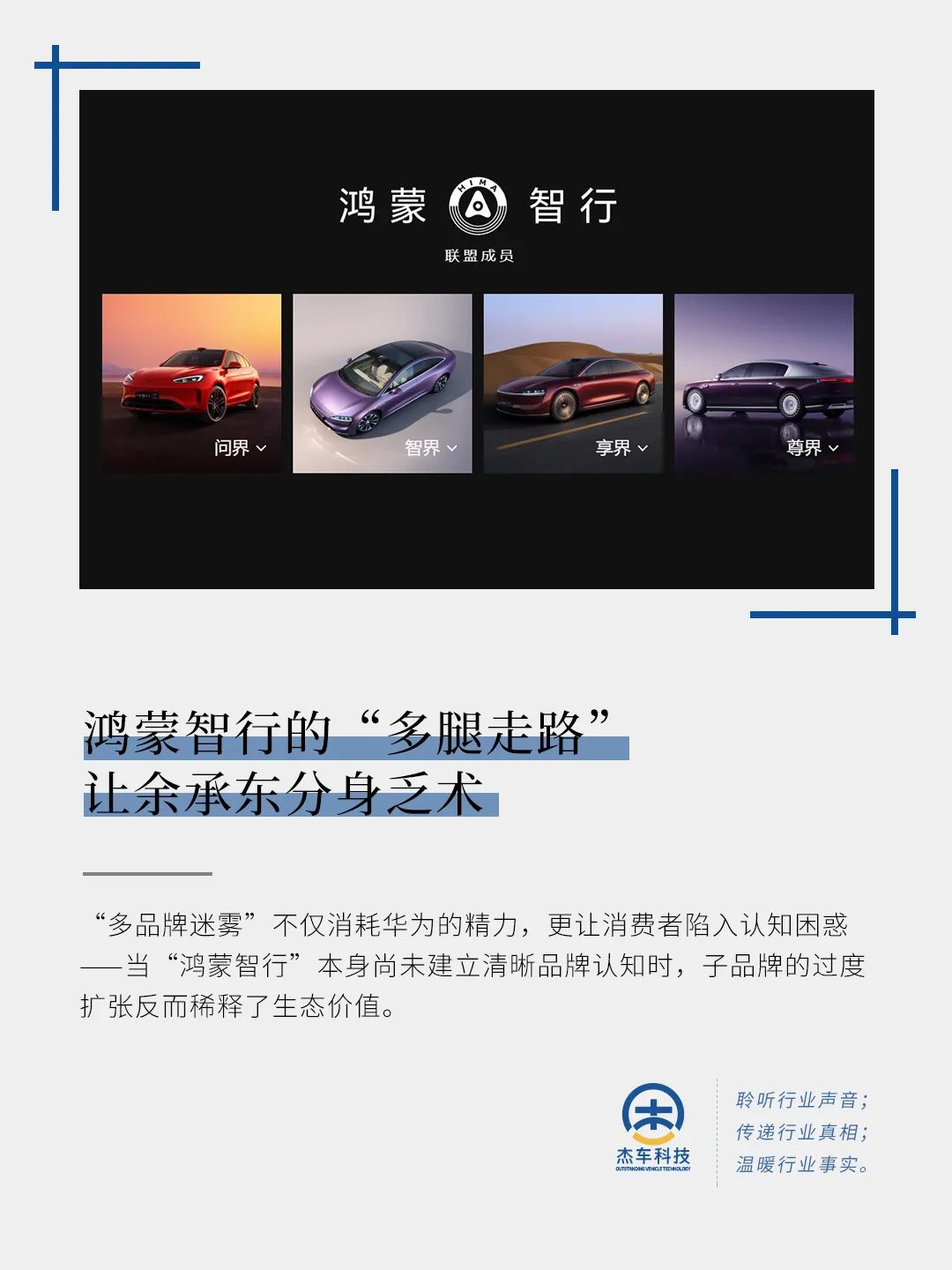 不得不说,鸿蒙智行的“界字军团”本意是覆盖多元市场,但品牌过多导致力量分散,消费者也存在认知上的困扰。