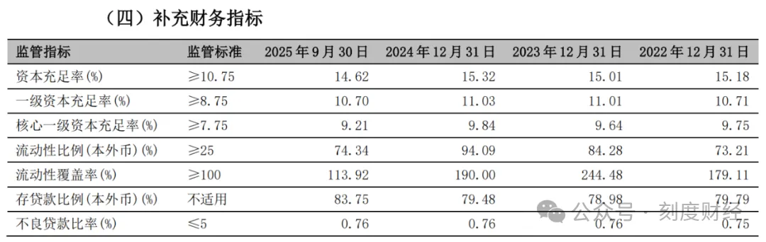 然而高速扩张的背后,是资本充足水平的持续承压。2025年三季度,宁波银行核心一级资本充足率已降至9.21%,较年初下降0.63个百分点。一级资本充足率和资本充足率也同步降至10.70%和14.62%,资本缓冲空间明显收窄。