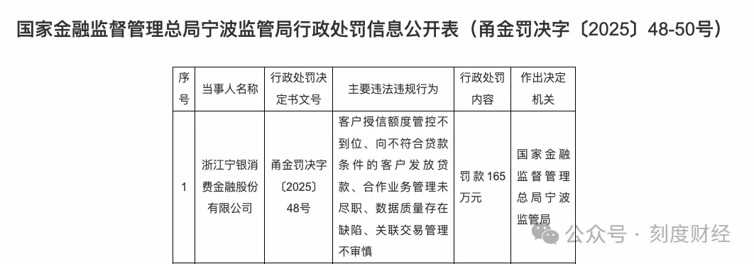 其中,2025年7月宁银消金因“向不符合条件客户放贷”等五项违规被罚165万元,创下该子公司成立以来最大罚单纪录;衢州分行因“票据贴现业务审查不严”被罚100万元,显示出基层风控的薄弱。