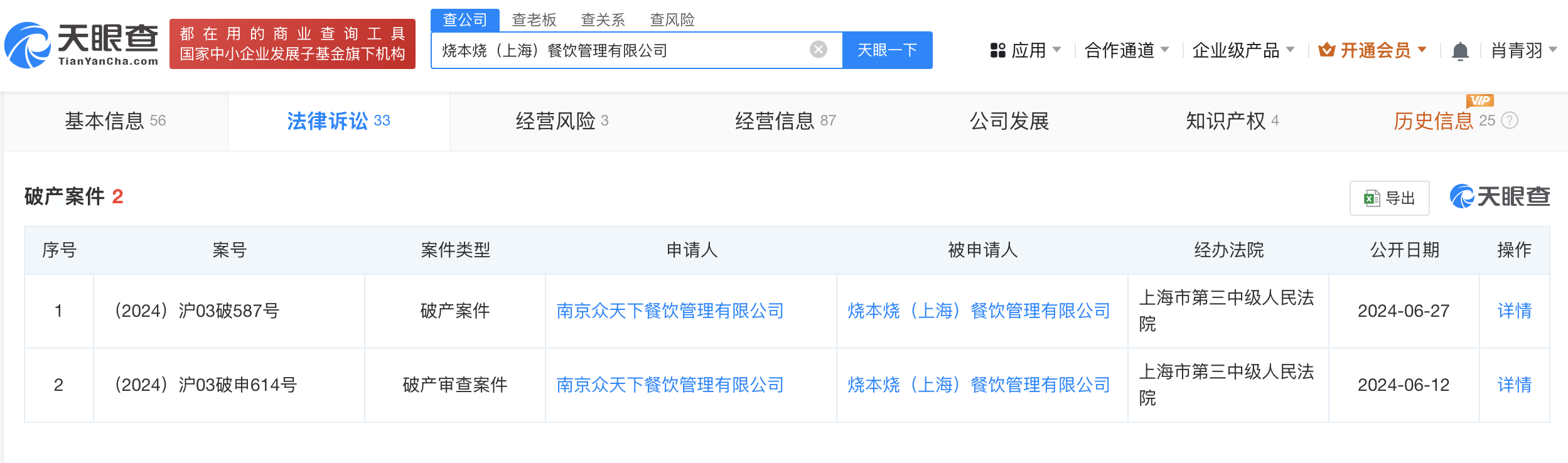 烧本烧烤肉公司起诉张翰 起诉张翰烤肉公司已被申请破产观点