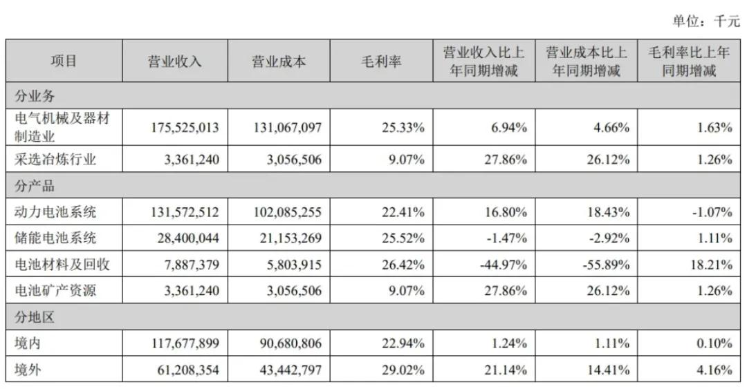 根据海豚投研,宁德时代动力电池的单价从2024 年下半年0.63元/Wh环比下滑到 2025 年上半年0.61元/Wh;2025年上半年,动力电池系统的毛利率为22.41%,同比下降1.07%。