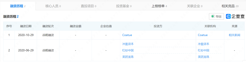 企查查数据,截止目前古茗仅有两次融资,2020年上半年,获得了红杉资本与美团旗下的龙珠资本等投资;当年10月底,又新增加了股东Coatue Management(寇图资本),两次融资规模仅为千万级,远不及同行的亿级的融资规模。