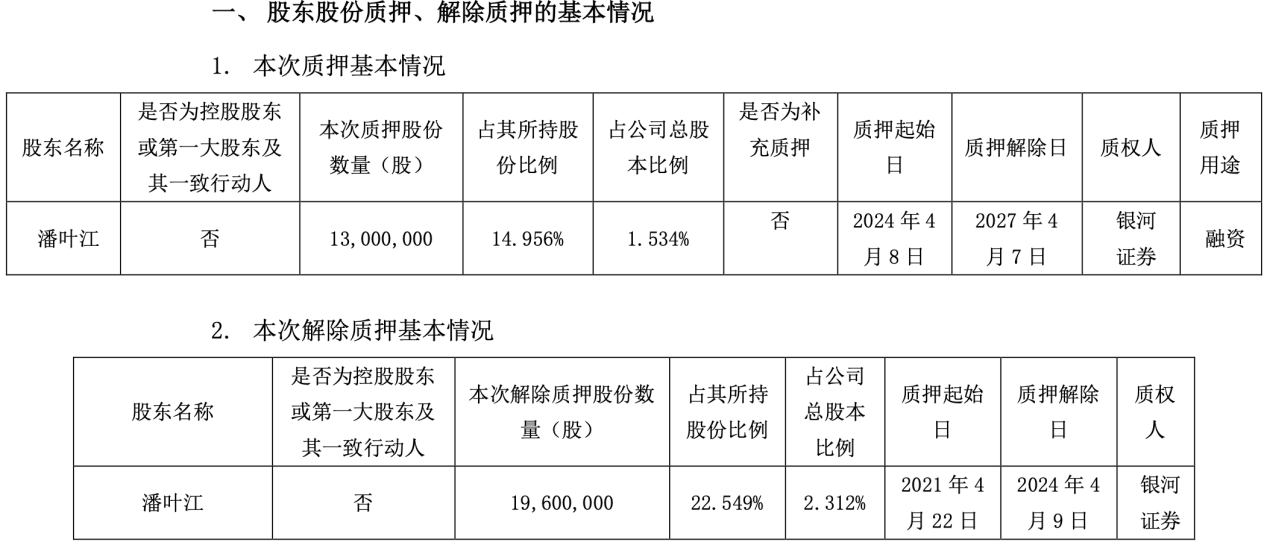也是在4月,华帝股份还公告称,董事长潘叶江在解除1960万股股权质押的同时,新增1300万股股权质押,占其所持股份比例为14.956%,质押用途为融资。业内人士分析称,或与华帝同期进行的股权回购相关联。