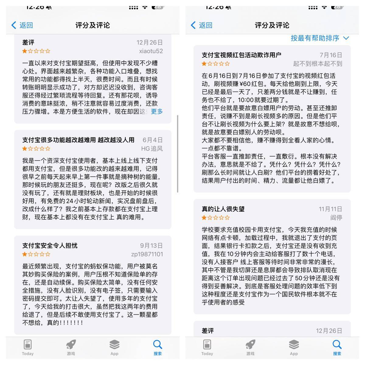 支付稳定性是支付软件留住用户的根本,而支付宝近两年的几次支付BUG,让用户对其信任大打折扣。口碑和信任才是支付软件做大做强的核心,但支付宝在功能繁杂、客服响应慢等问题的影响下,口碑逐渐下滑。在appstore的支付宝评论区,针对支付宝的吐槽层出不穷。如果支付宝不能重视这些问题,及时改进,那么它将面临更加严峻的信任危机,未来的发展也将岌岌可危。